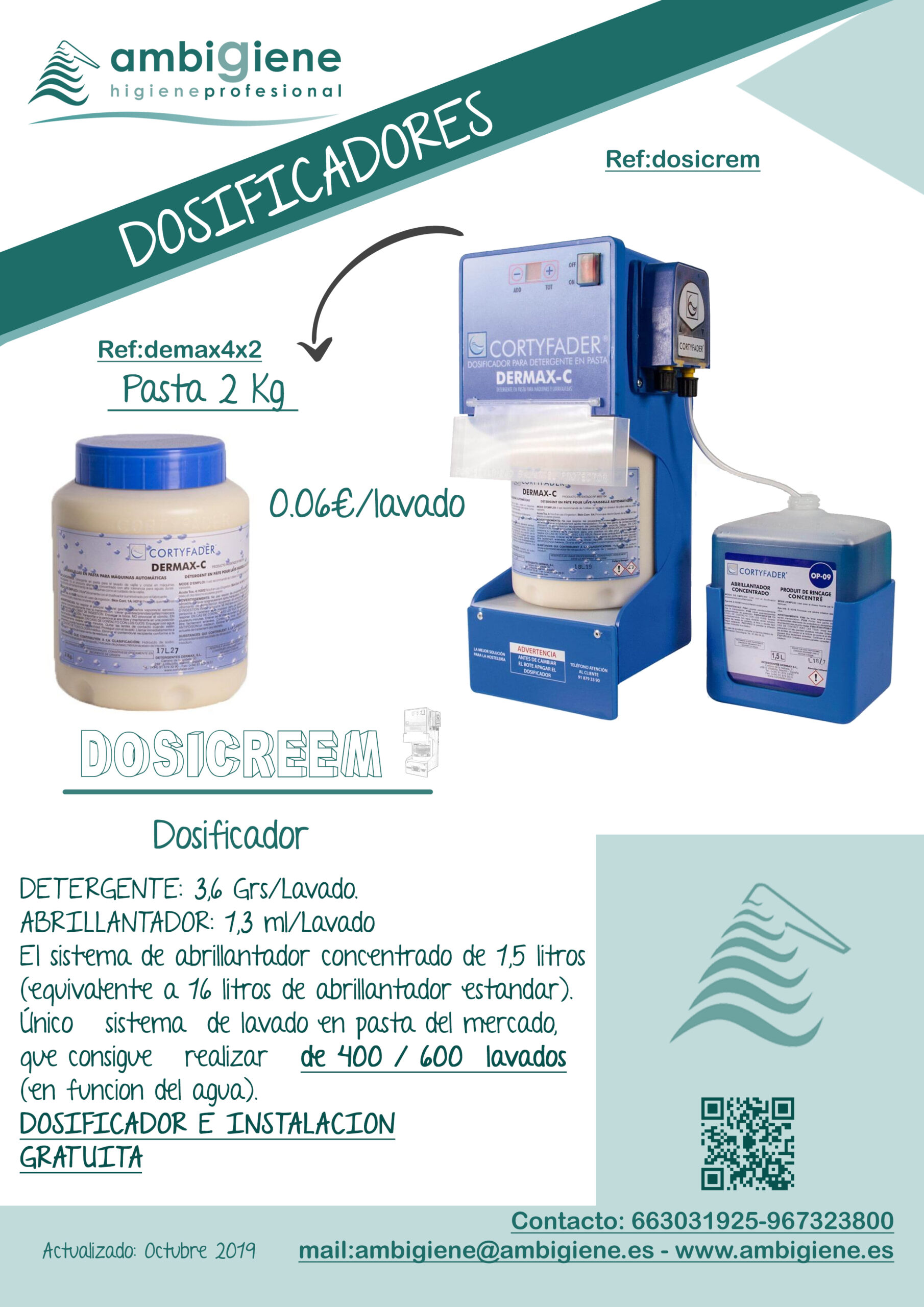Los sistemas de dosificación permiten controlar con precisión la cantidad exacta de detergente y abrillantador en cada lavado. Esto se traduce en una limpieza homogénea, un menor consumo de producto y una mayor seguridad en el uso diario.